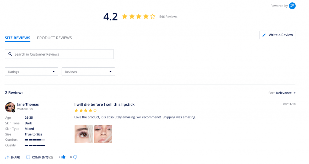 The main purpose of displaying customer reviews is to build trust with your customers. We all are a little skeptical of marketing messages, particularly when they make some promises that seem too good to be true. So, the only way we can find out how well the product works before trying it ourselves is by seeing what other people have to say about it.