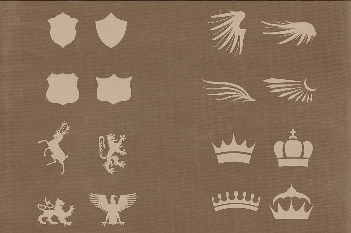 This Retro Vintage Graphic Designer Kit is composed of 35 elements, including 20 vintage heraldry shapes, 9 grunge textures, 4 logo templates, and 2 vintage frame designs. All the elements are available in AI, EPS, and PSD for convenience and flexibility.